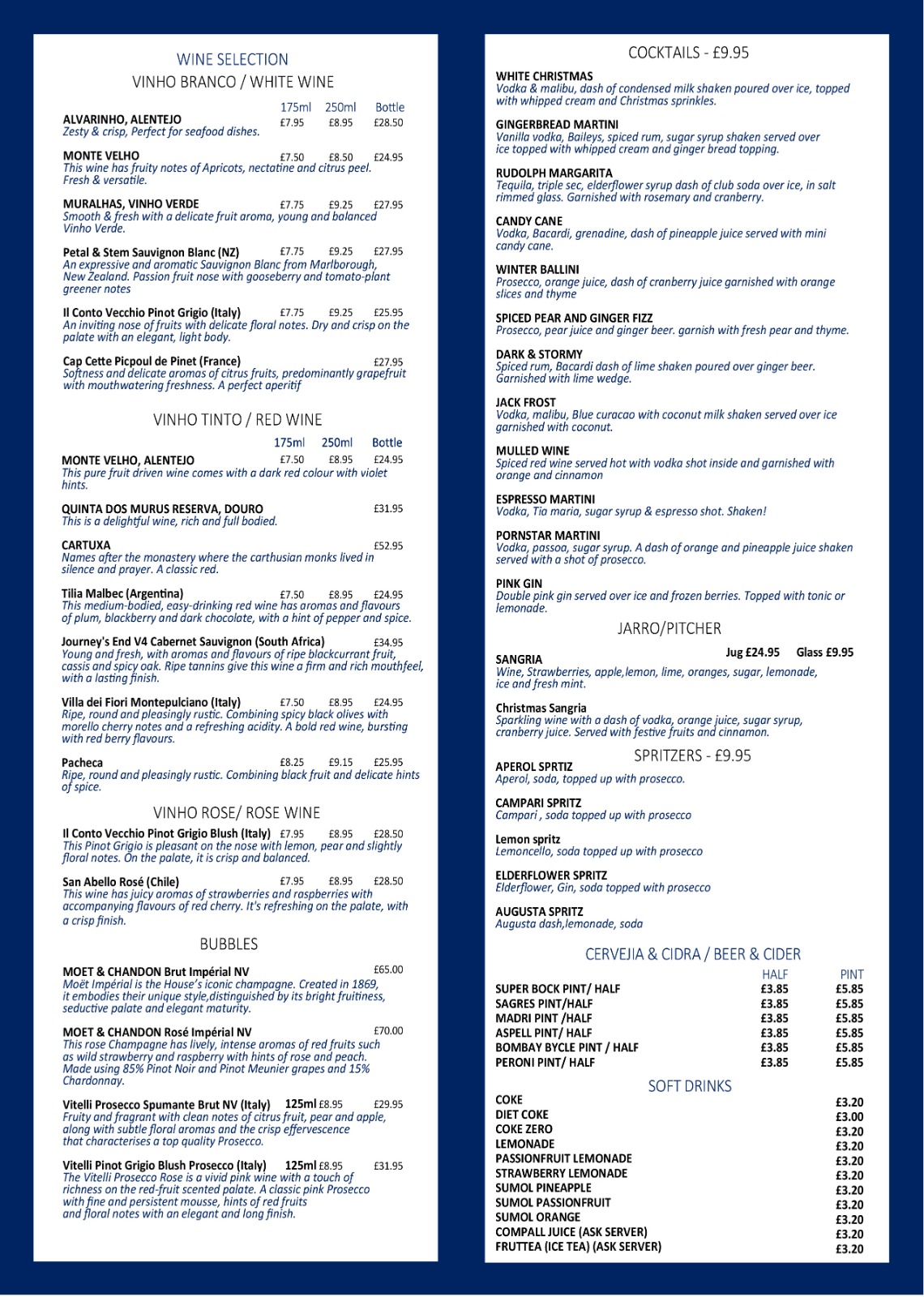 Vodka, Bacardi, grenadine, dash of pineapple juice served with mini candy cane.